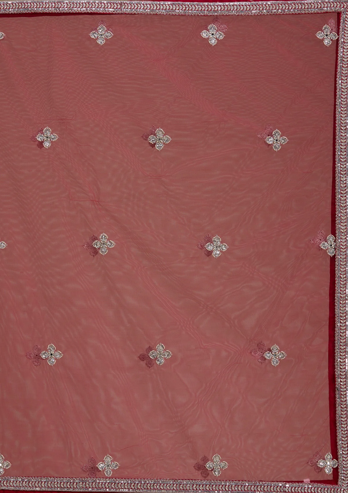 Red Silver Zariwork Raw Silk Readymade Lehenga